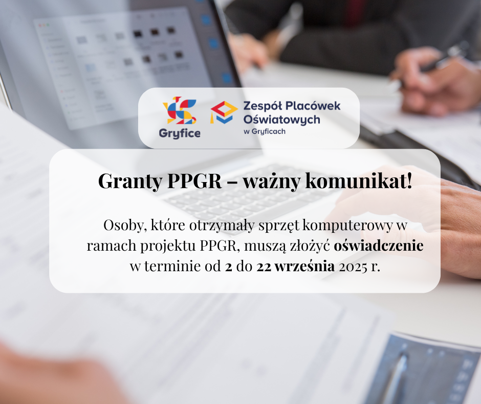 Przypominamy, że zgodnie z procedurą monitorowania utrzymania efektów projektu, osoby, które otrzymały sprzęt komputerowy w ramach projektu PPGR, zobowiązane są do złożenia oświadczeń w terminie od 2 do 22 września 2025 r.