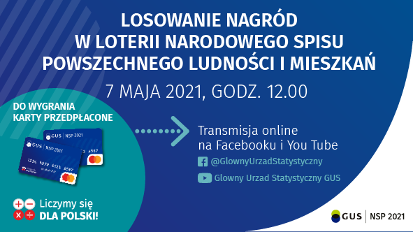 7 maja br. o godz. 12:00 odbędzie się pierwsze losowanie nagród w Loterii, z którego transmisja odbędzie się na profilach GUS na Facebooku i YouTube.
