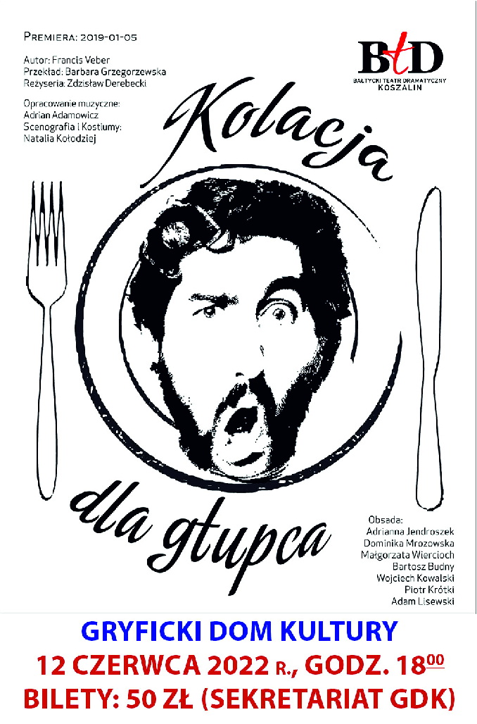 Gryficki Dom Kultury serdecznie zaprasza na spektakl teatralny pt. „Kolacja dla Głupca”!