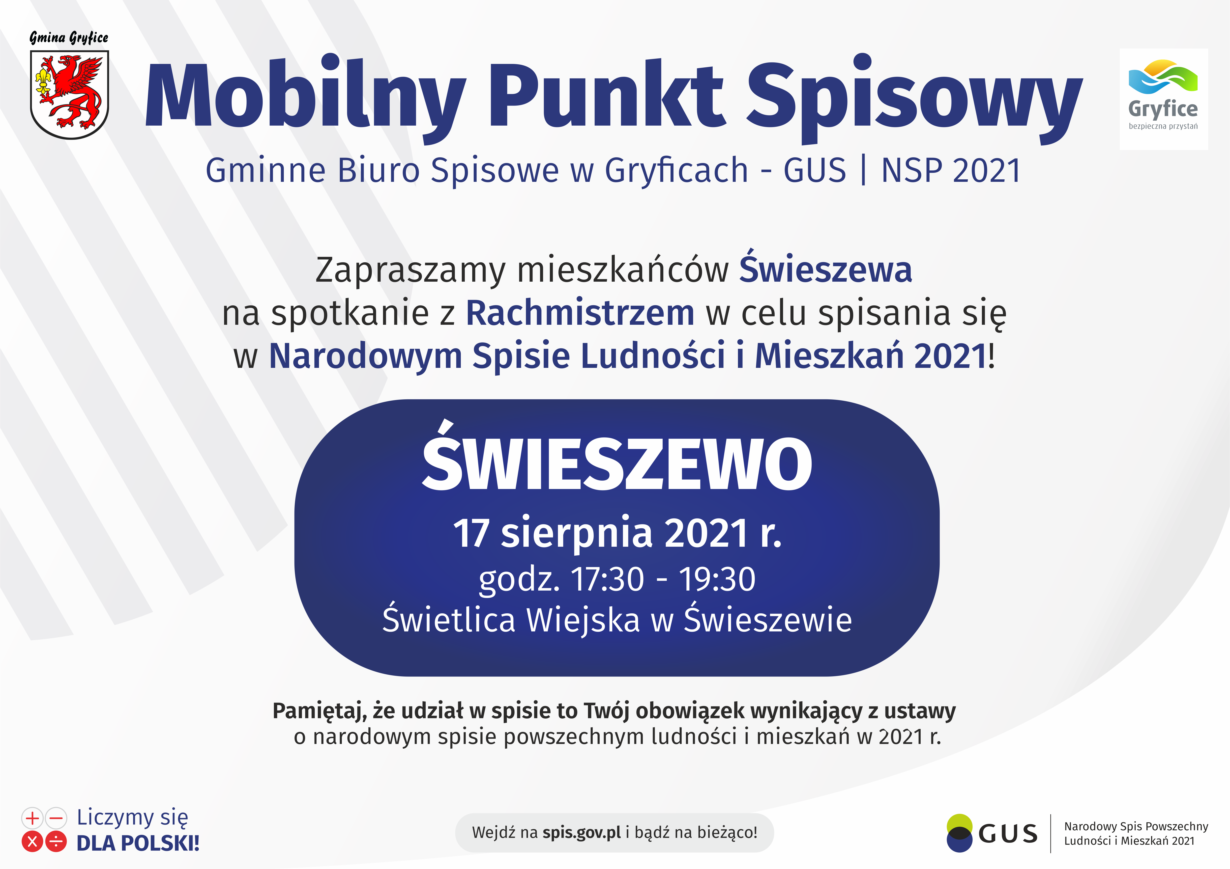 Komunikat Gminnego Biura Spisowego w Gryficach - ŚWIESZEWO