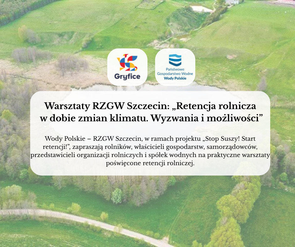 Zaproszenie na warsztaty RZGW Szczecin: „Retencja rolnicza w dobie zmian klimatu. Wyzwania i możliwości”